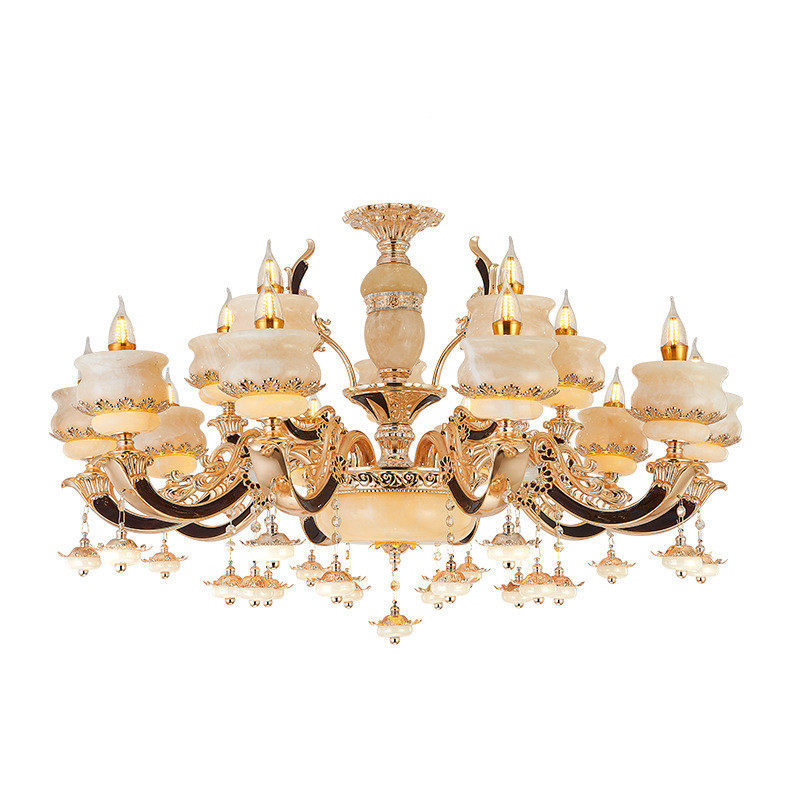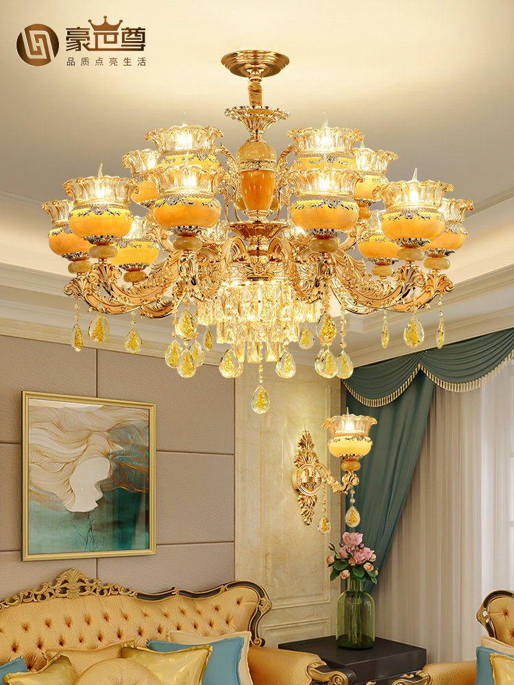欧式玉石水晶吊灯黄龙玉客厅灯新款奢华大气别墅卧室餐厅灯具家居