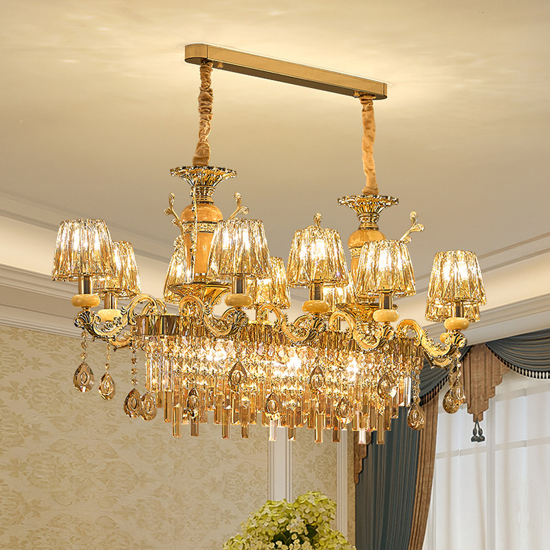 饭厅吊灯2025年新款欧式奢华玉石别墅客厅茶室水晶吧台长方形灯具