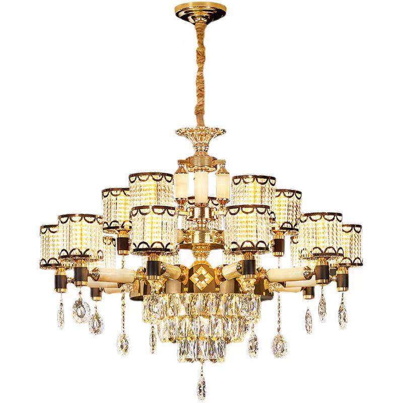 欧式别墅吊灯客厅灯覆式楼loft多层玉石水晶灯2025新款大厅长吊灯