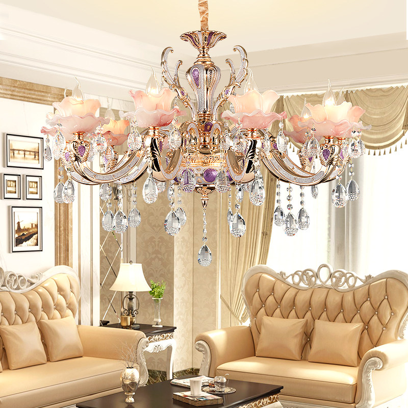 欧式水晶吊灯高档别墅客厅餐厅玉石灯温馨浪漫粉色公主房卧室灯具