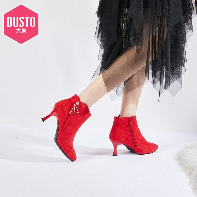 DUSTO/大东新娘鞋尖头高跟红色短靴婚靴秋冬20D1085加绒尾货处理