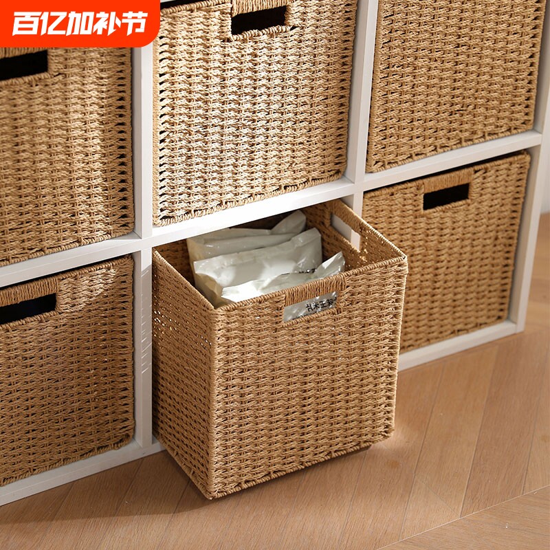 日式储物盒编织非草编藤编筐玩具书本车载收纳箱客厅杂物收纳盒大