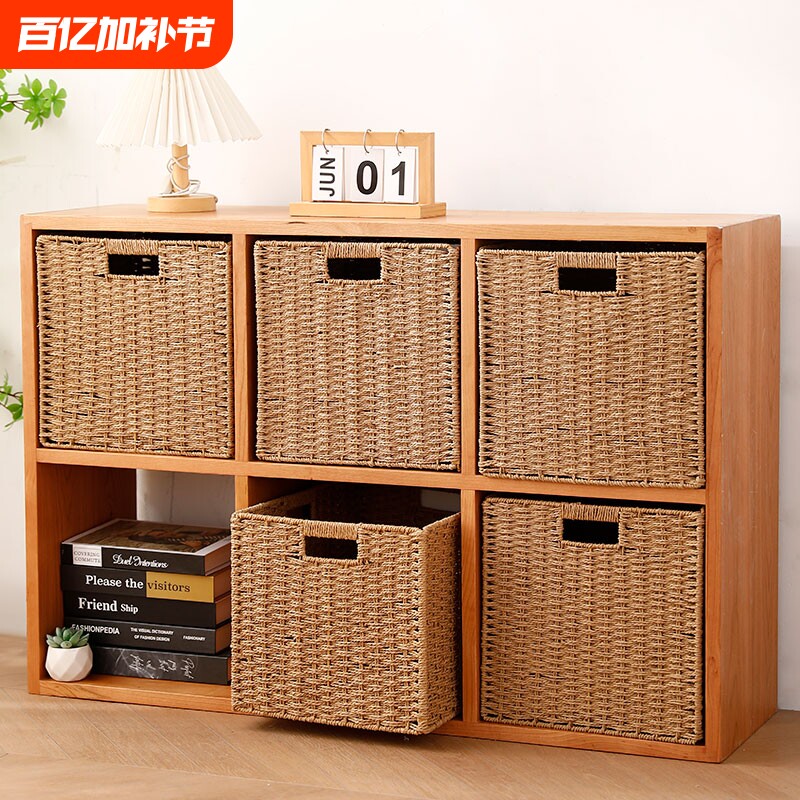 KENS抽屉式茶几电视柜格子柜收纳筐藤编收纳框杂物整理储物篮子