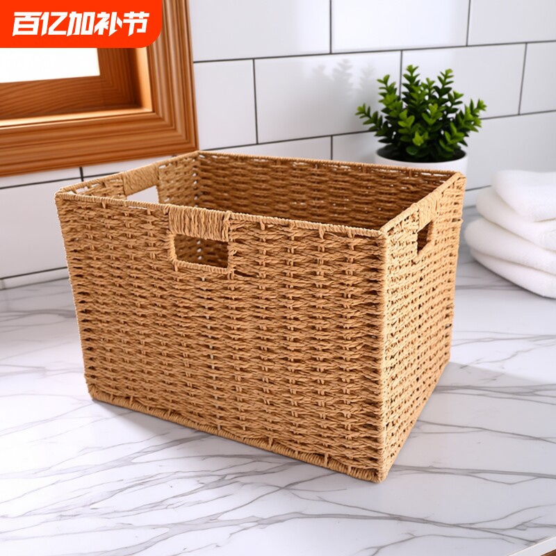 编织收纳筐家用脏衣篓篮子桌面零食筐书本杂物储物筐大容量收纳箱