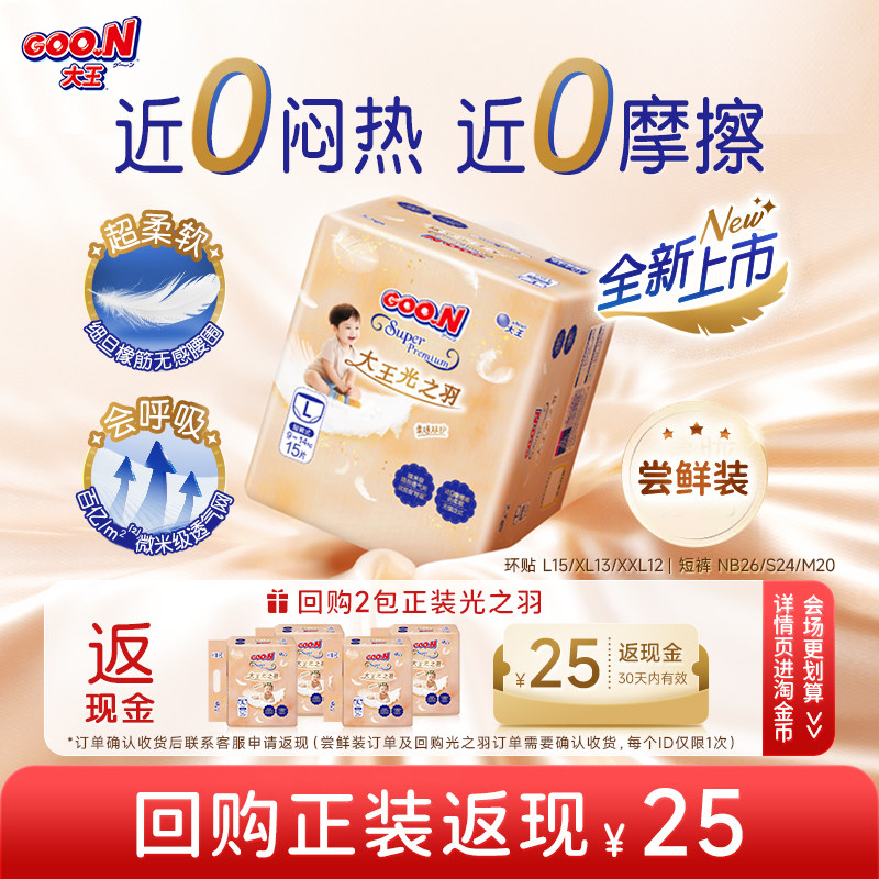 大王光羽致本之源纸尿裤NB/S/M/L/XL-拉拉裤L/XL/2XL/3XL超薄透气