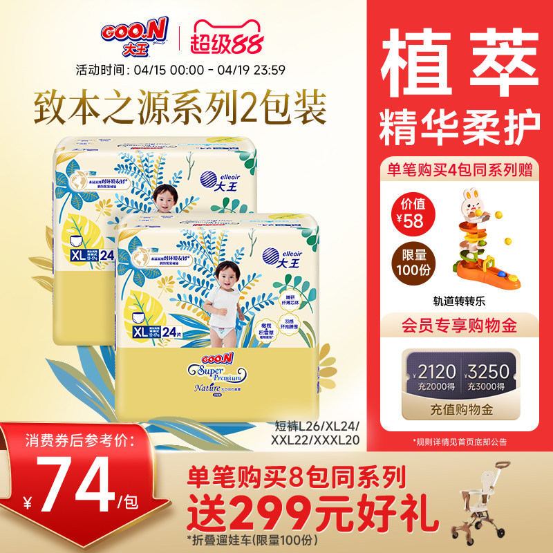 大王致本之源系列拉拉裤2包全尺码超薄透气干爽婴儿尿不湿纸尿裤