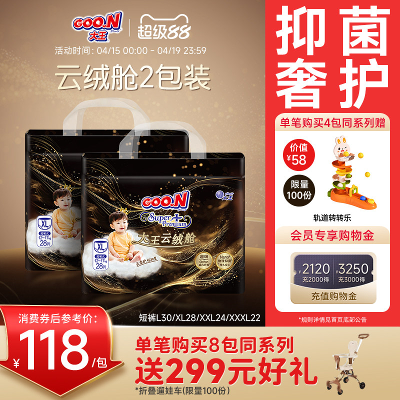 【物理抑菌>99%】大王云绒舱短裤式纸尿裤2包装干爽透气拉拉裤