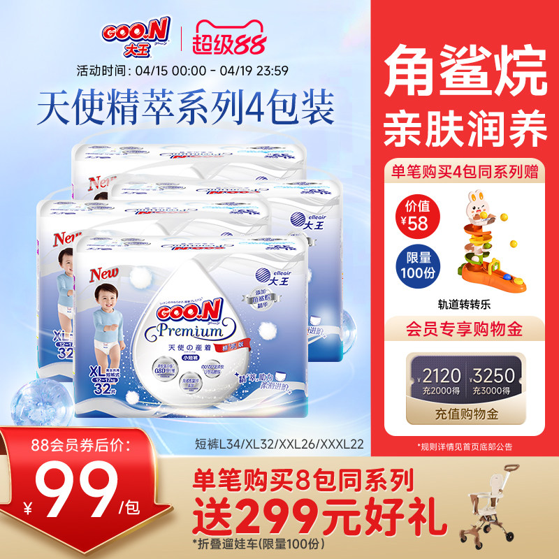 【百补】大王升级天使精萃短裤纸尿裤L/XL/XXL/XXXL码 2包装透气