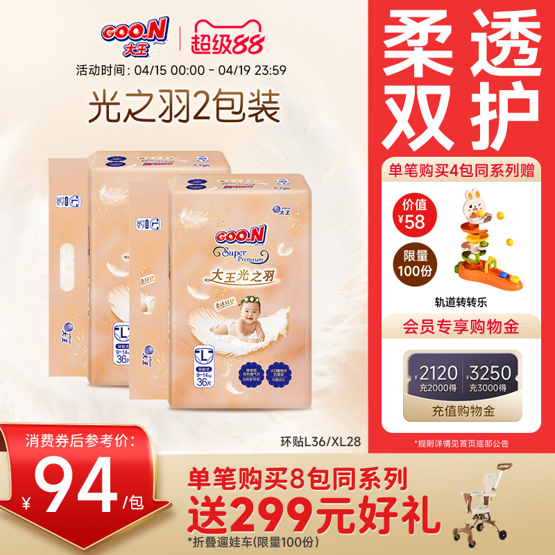 大王光之羽纸尿裤NB/S/M/L/XL-拉拉裤L/XL/2XL/3XL超薄透气尿不湿