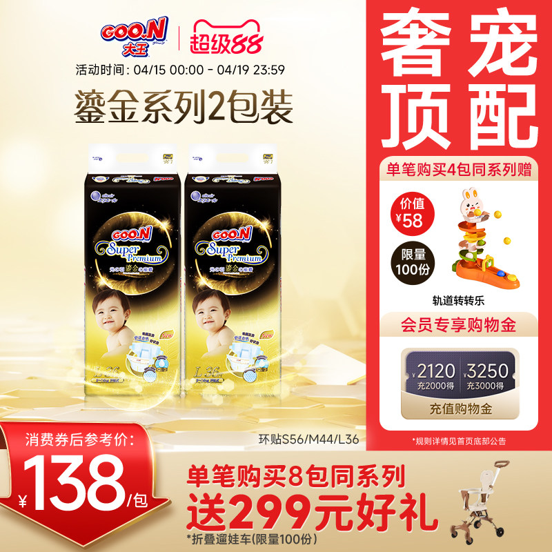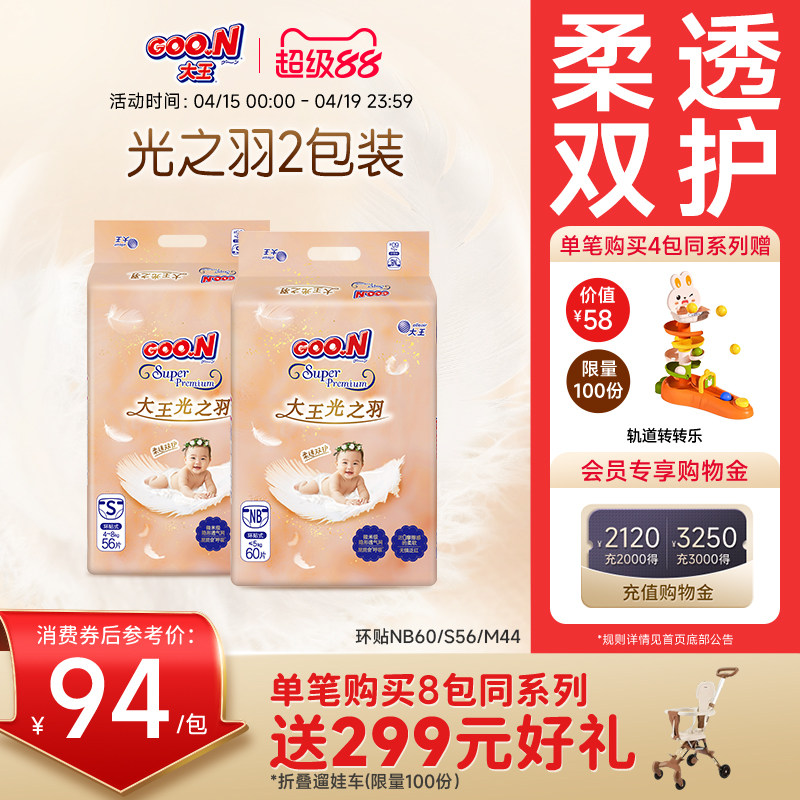 大王光羽鎏金环贴式纸尿裤S/M/L*2包婴儿超薄干爽透气棉柔尿不湿