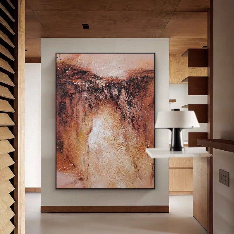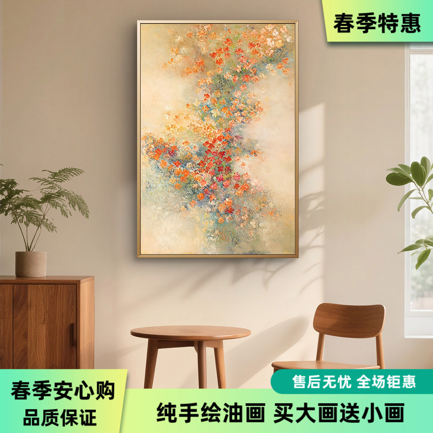 手绘油画侘寂风玄关装饰画抽象肌理客厅挂画现代简约民宿餐厅壁画
