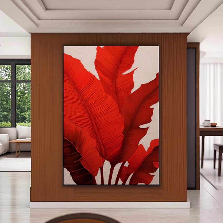 纯手绘植物油画玄关客厅背景墙挂画简约抽象画家大业大红色装饰画