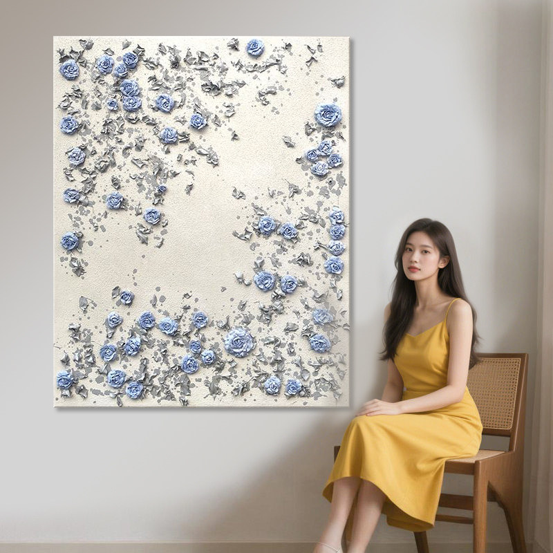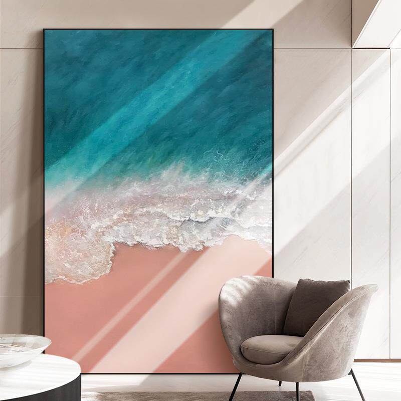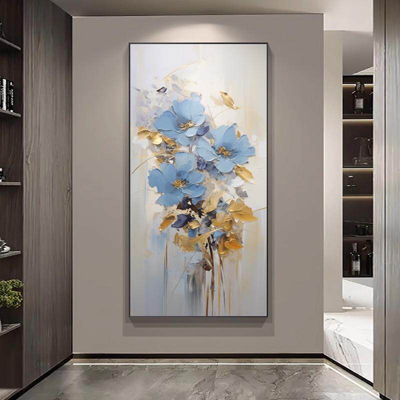 北欧玄关装饰画现代简约云浪抽象风景肌理蓝色油画客厅大幅落地画