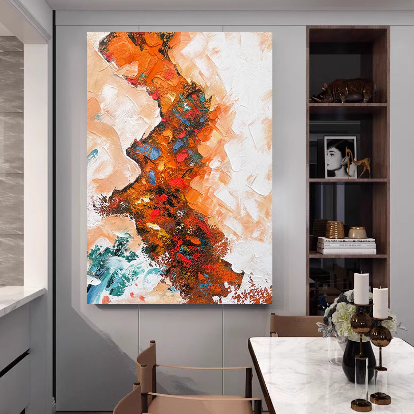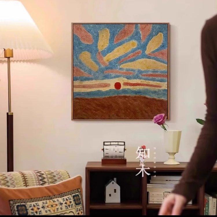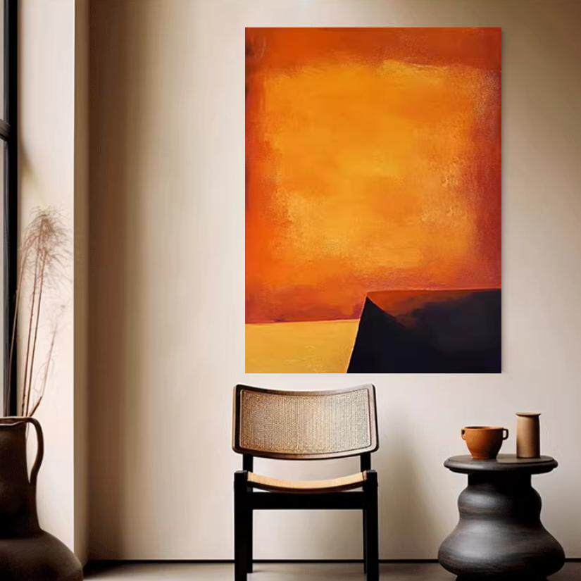现代简约抽象客厅装饰壁画橙色油画感落地画入户玄关卧室床头挂画