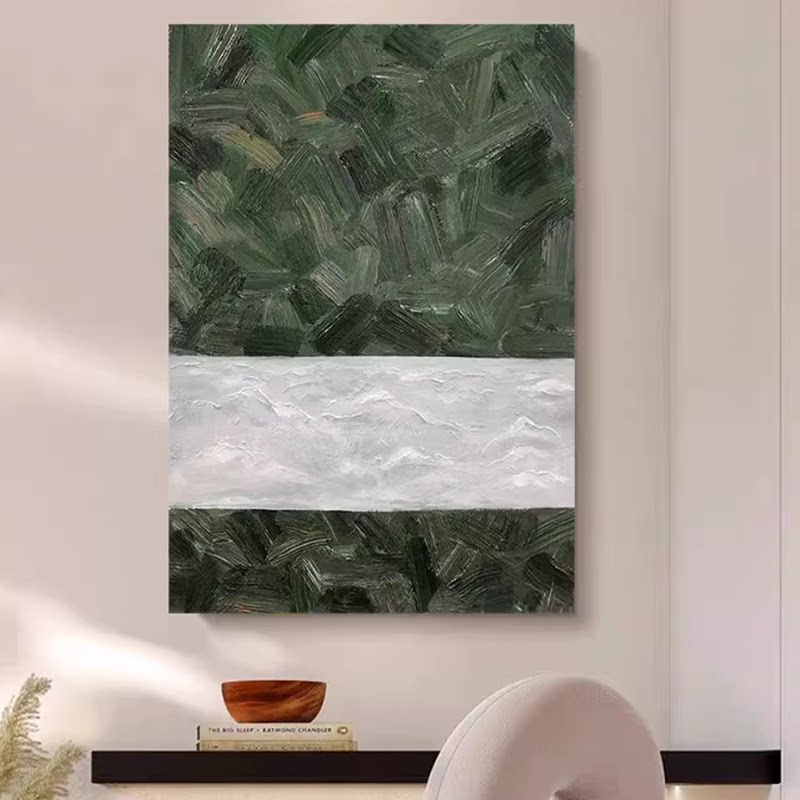 MHD手绘油画客厅沙发装饰画绿色抽象玄关画现代简约轻奢肌理挂画