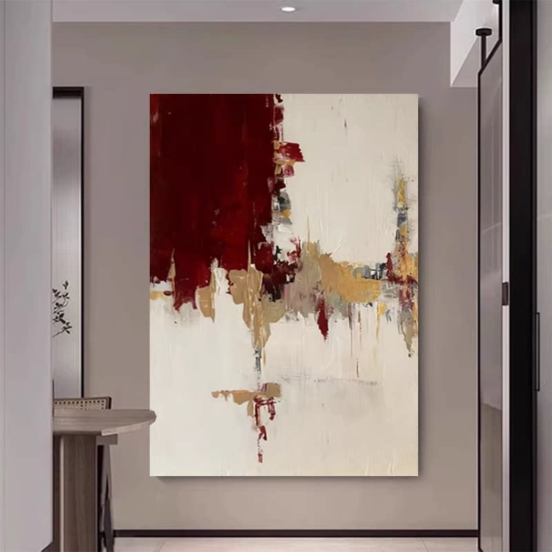 XD现代客厅手绘艺术抽象肌理画创意玄关挂画装饰画北欧简约红色画
