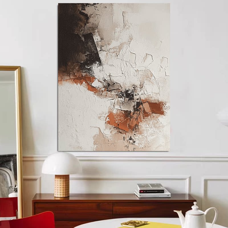 XD现代手绘侘寂风客厅大幅肌理油画样板房玄关北欧简约抽象艺术画