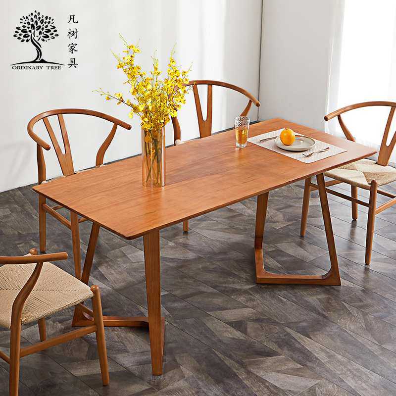 - 原木色实木餐桌