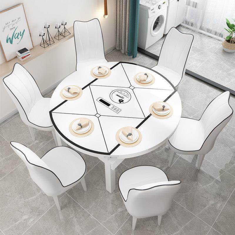 岩板餐桌椅组合家用小户型可变圆桌北欧现代实木伸缩电磁炉吃饭桌