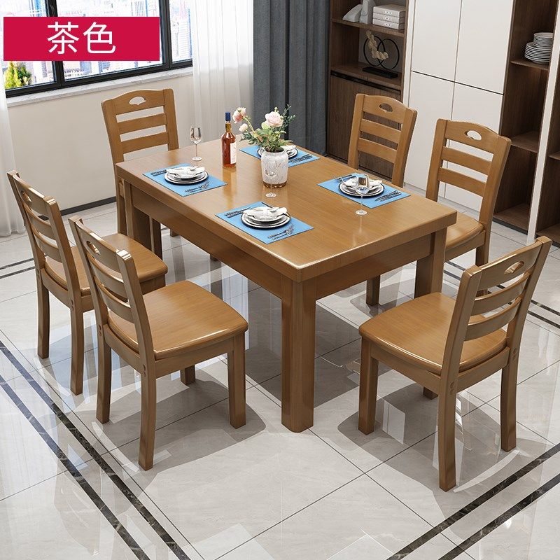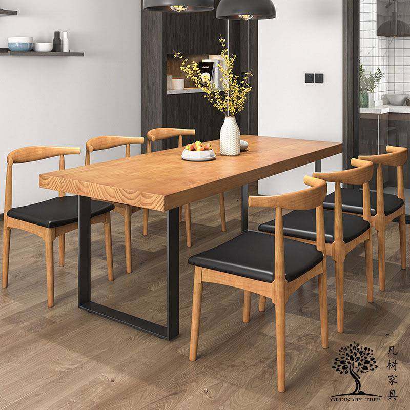 实木餐桌椅组合 现代简约家用长方形吃饭桌子 餐厅饭店桌椅组合