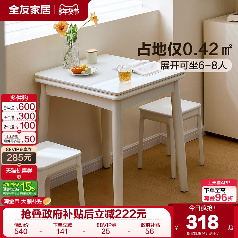 全友家居现代简约小户型客厅折叠餐桌椅组合家用玻璃饭桌实木脚桌