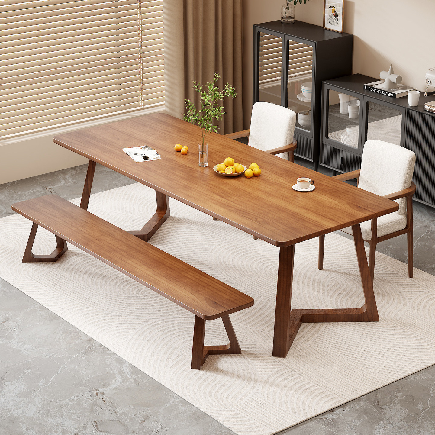 实木餐桌长方形家用轻奢现代简约胡桃书桌办公洽谈茶桌广岛椅组合