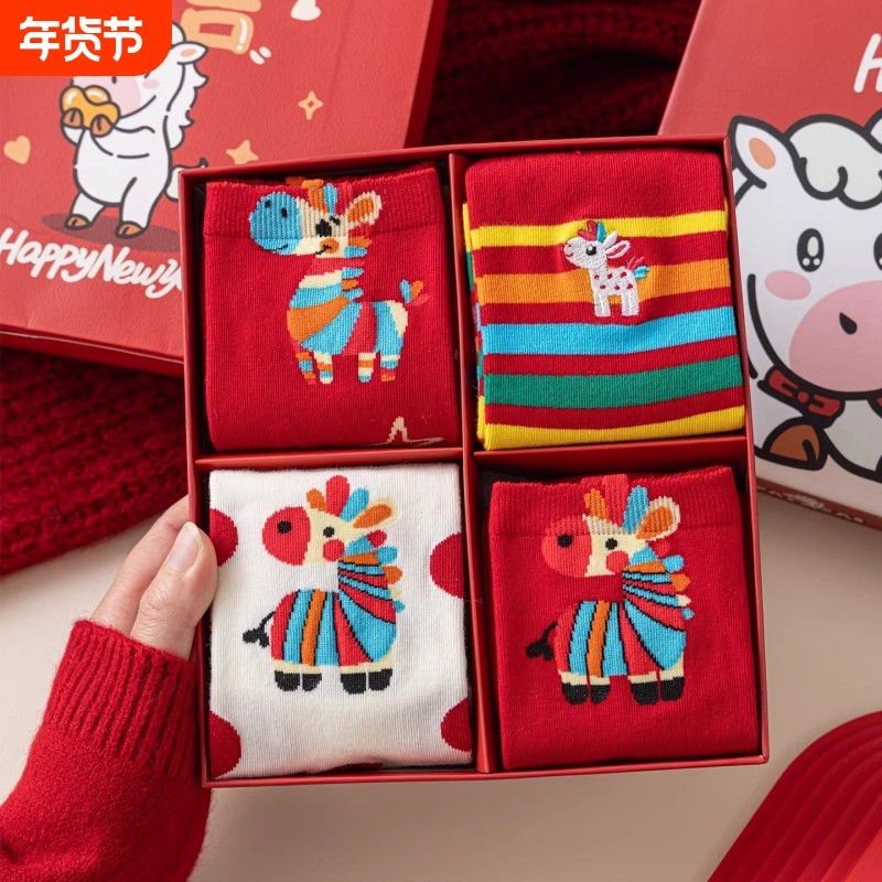本命年女礼物红袜子女款中筒袜冬纯棉袜可爱马年礼盒装新年喜庆袜