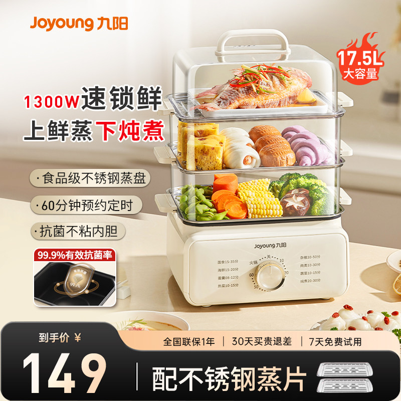 九阳电蒸锅三层多功能家用不锈钢大容量大功率蒸菜蒸包子2025新款