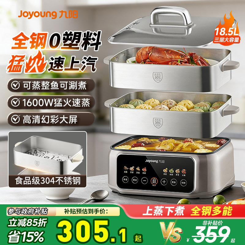 九阳电蒸锅多功能家用三层不锈钢蒸煮炖一体锅2026新款旗舰店正品
