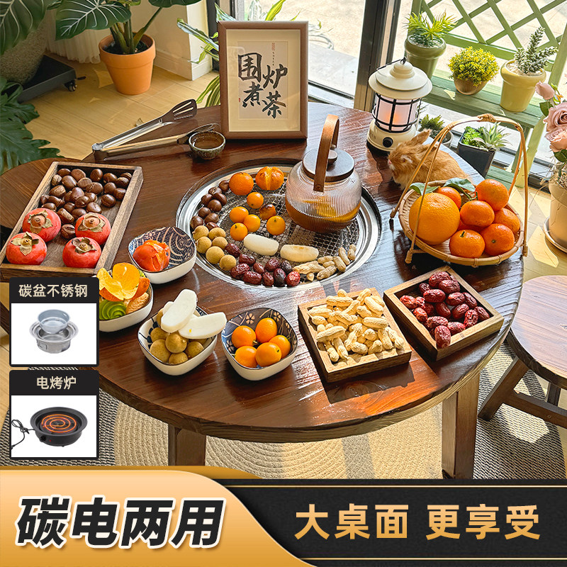 围炉煮茶木桌电碳两用阳台休闲取暖桌子庭院烧烤全套器具一体桌椅