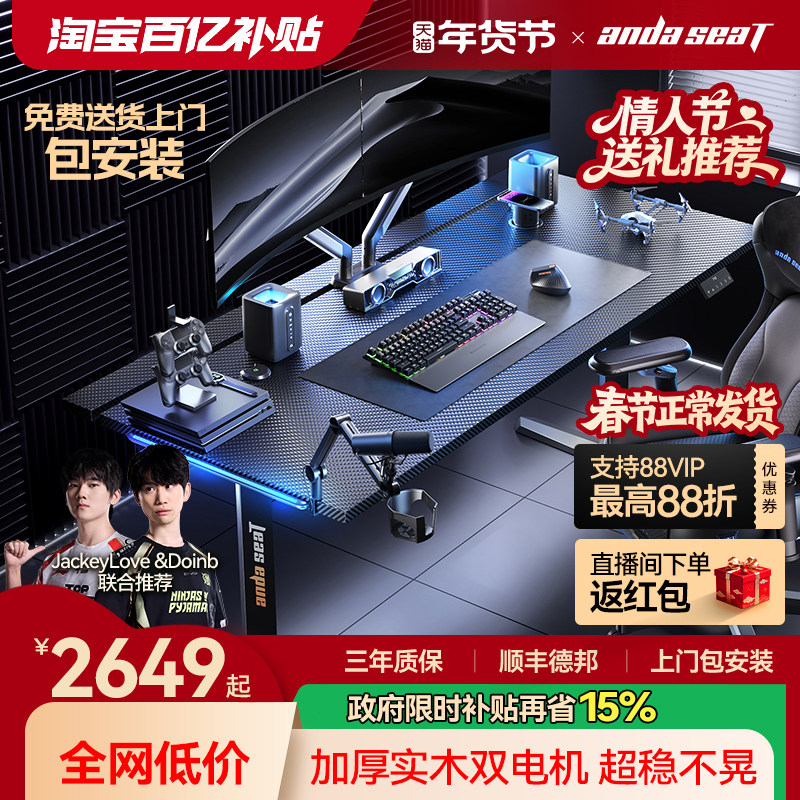安德斯特巡航战士max 电竞桌pro双电机电动升降桌实木桌子电脑桌