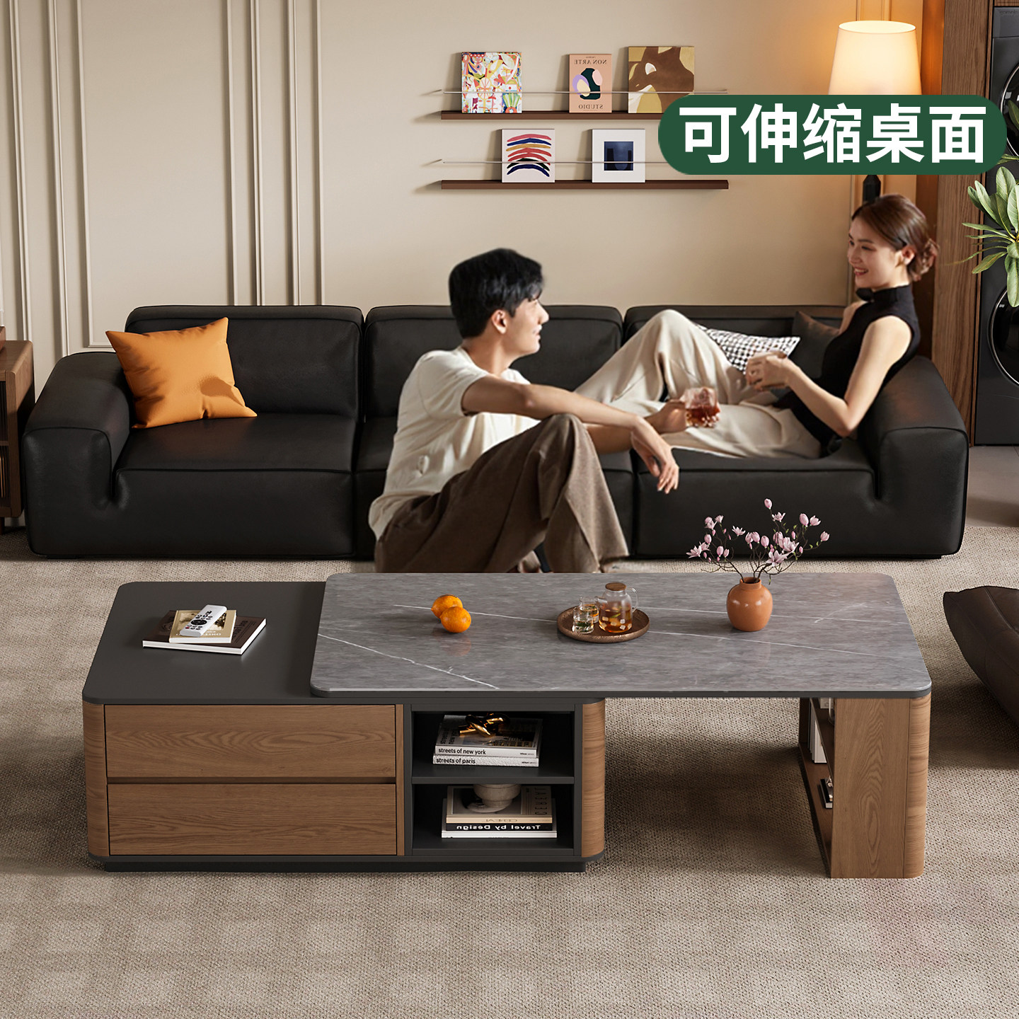 伸缩茶几2026新款客厅家用轻奢高级感实木桌子小户型岩板茶几桌