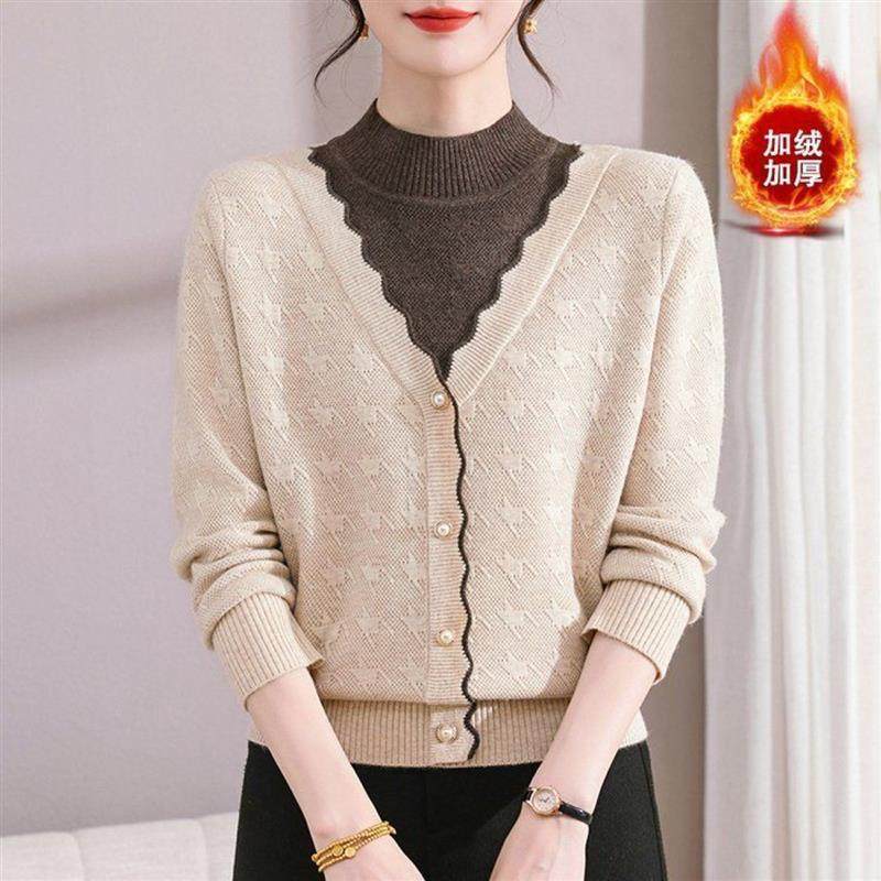 中年妈妈装加绒加厚毛衣中老年女装针织打底衫奶奶秋冬假两件上衣