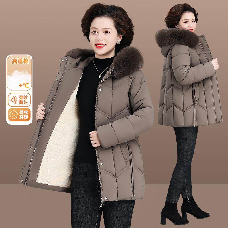 中老年女装妈妈装保暖外套中年秋冬季加绒加厚新款老太太高贵大衣