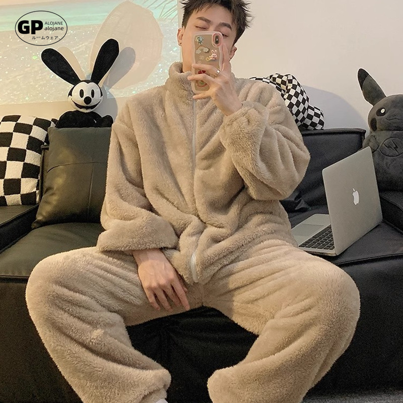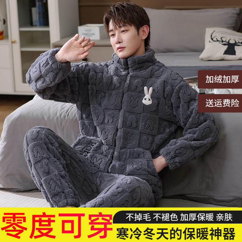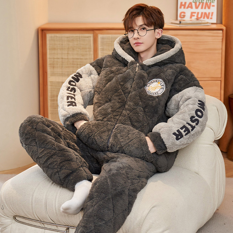 - 男夹棉珊瑚绒睡衣加厚