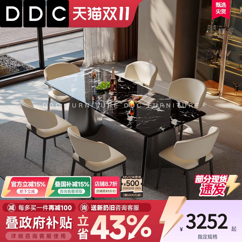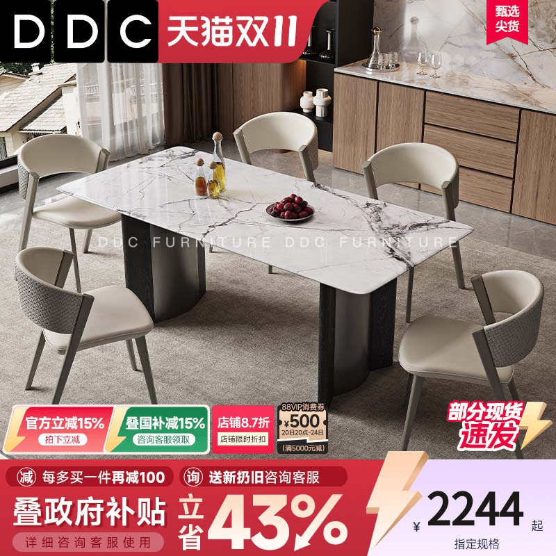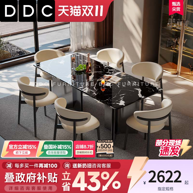 DDC意式极简天然奢石餐桌椅组合三色可选客厅高级感长餐桌25新款