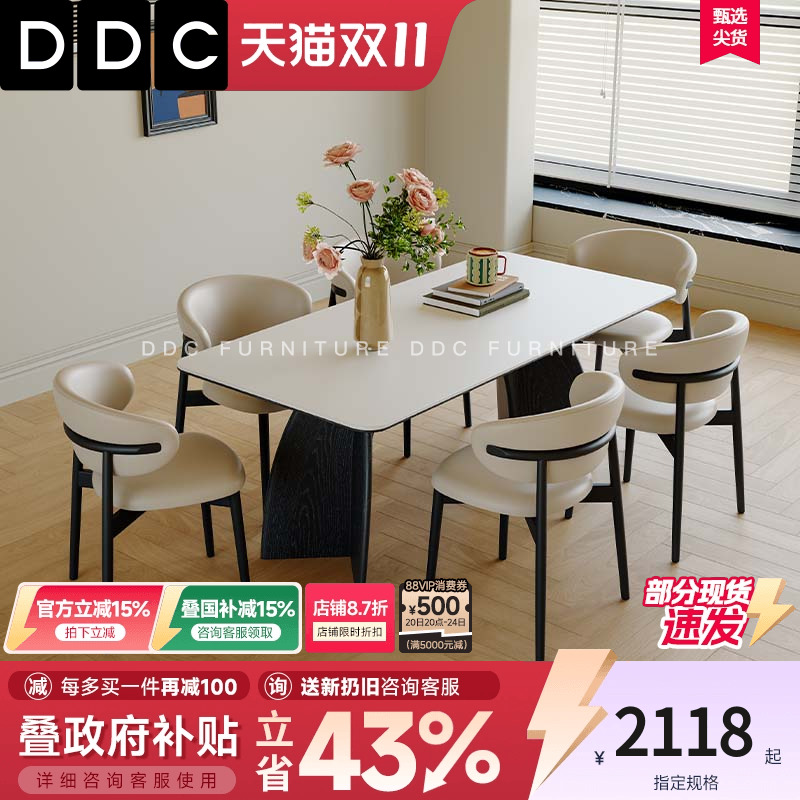 DDC现代简约进口橡木岩板长餐桌客厅家用高级感全托实木板餐桌椅