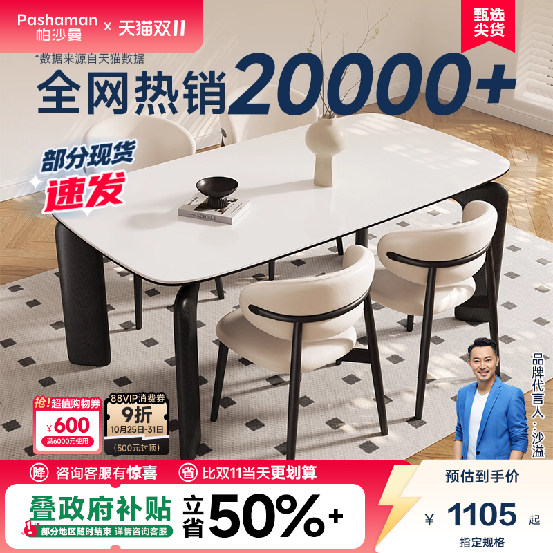 政府补贴帕沙曼全托岩板餐桌复古风可变圆桌大象腿长方形吃饭桌子