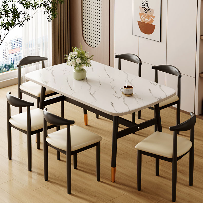 长方形亮光岩板餐桌 全屋搭配餐厅系列 1.6米1.8米2米长餐桌组合
