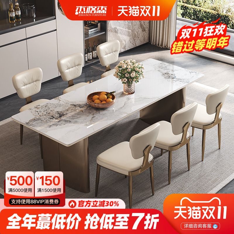 轻奢超晶石意式长餐桌现代简约大理石奢石餐厅桌椅大小户型西餐桌