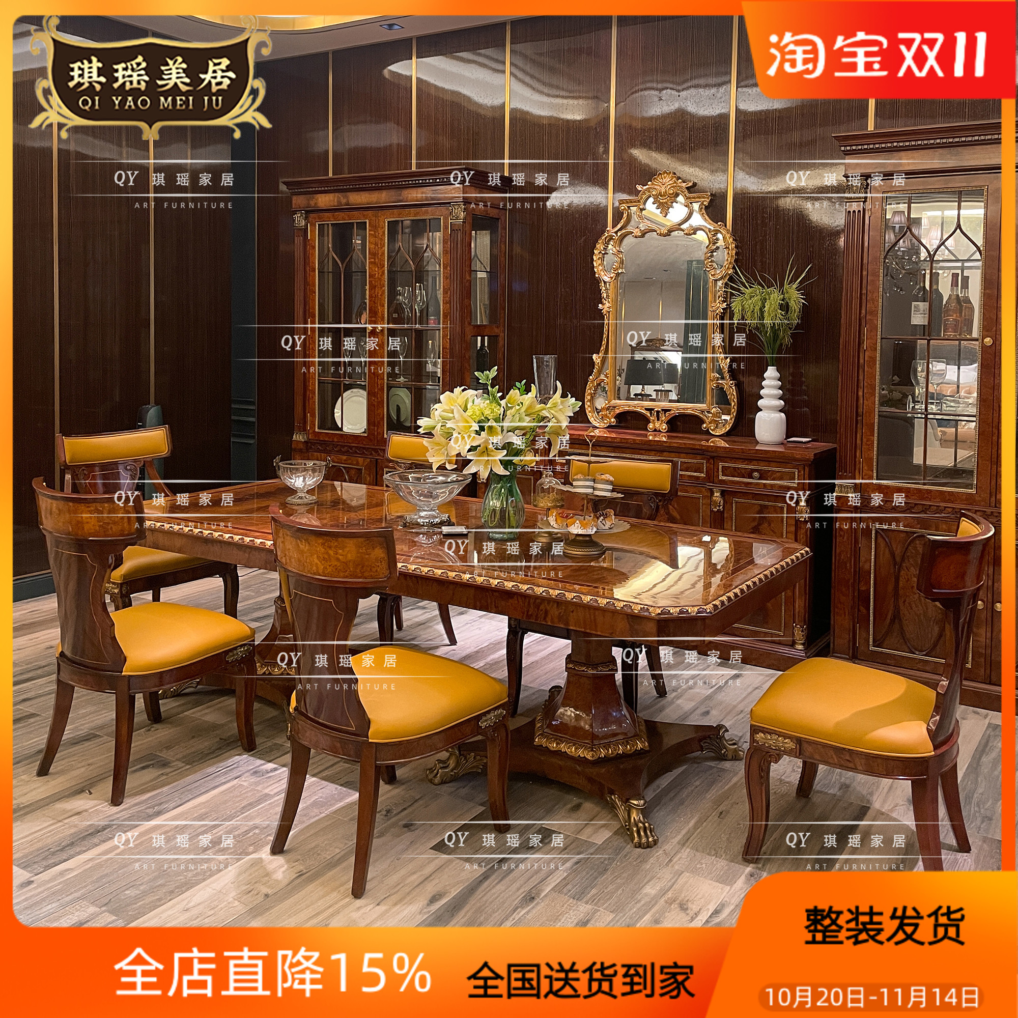 琪瑶家居欧式奢华实木长餐桌法式别墅客厅餐桌古典英式餐桌椅组合