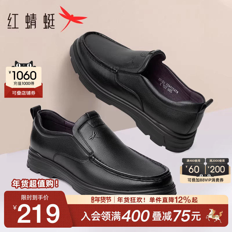 红蜻蜓男鞋商务休闲皮鞋男士职场通勤真皮轻便一脚蹬中老年爸爸鞋