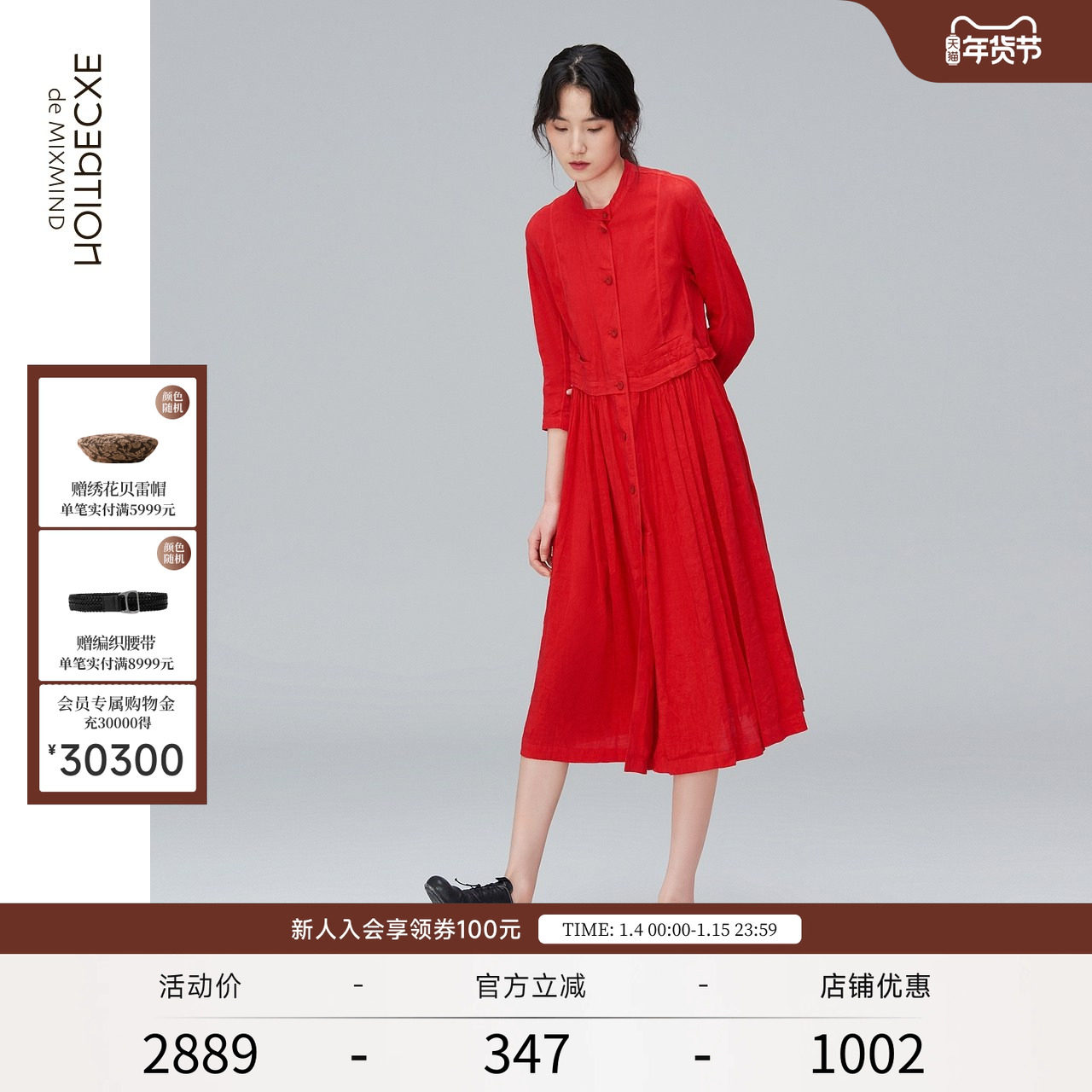 - 棉麻连衣裙 中长款