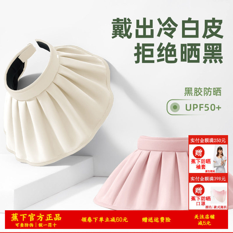 蕉下女士空顶防晒帽黑胶运动户外骑行遮阳透气舒适防紫外线太阳帽