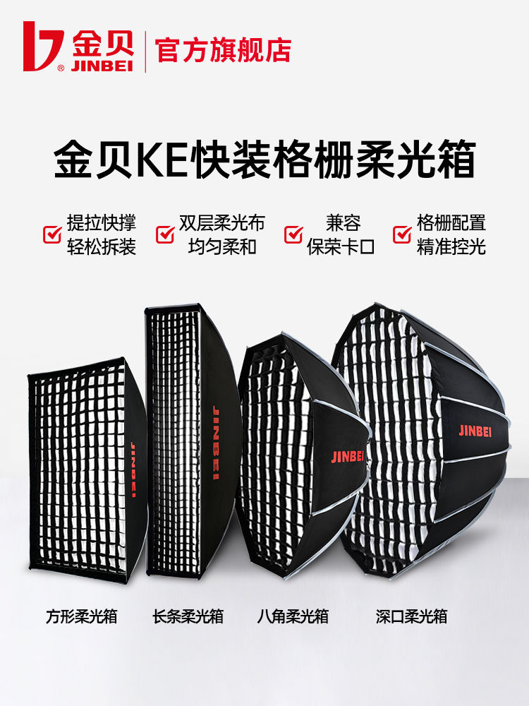 金贝柔光箱KC快装秒开便捷柔光罩蜂巢网格深抛八角长条形格栅直播补光灯闪光灯罩摄影视频外拍控光保荣口通用