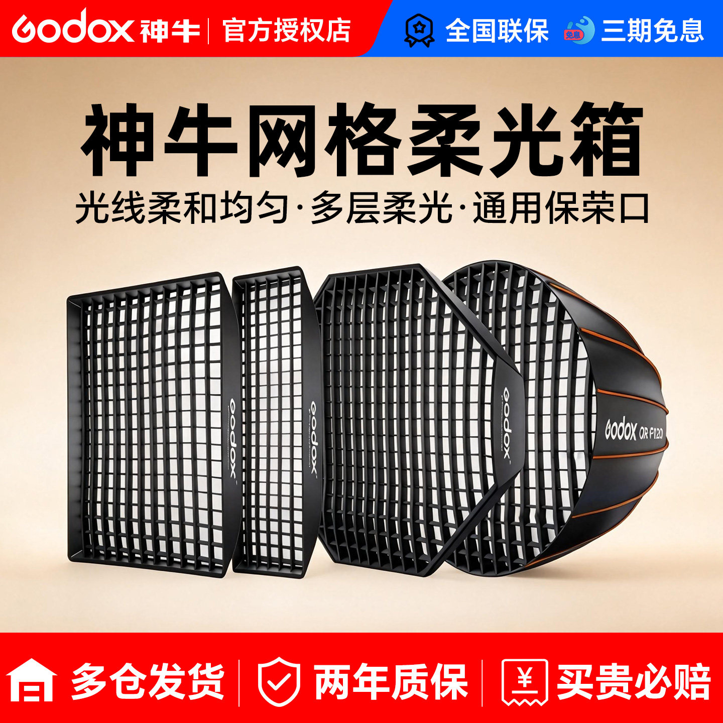 Godox 神牛网格柔光箱保荣卡口格栅长条方形蛋格八角摄影灯70 90柔光罩快装深抛 深口便携柔光摄影棚灯笼球