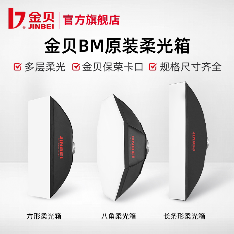 金贝BM系列长方形条形四角八角柔光箱直播灯闪光灯箱通用保荣卡口
