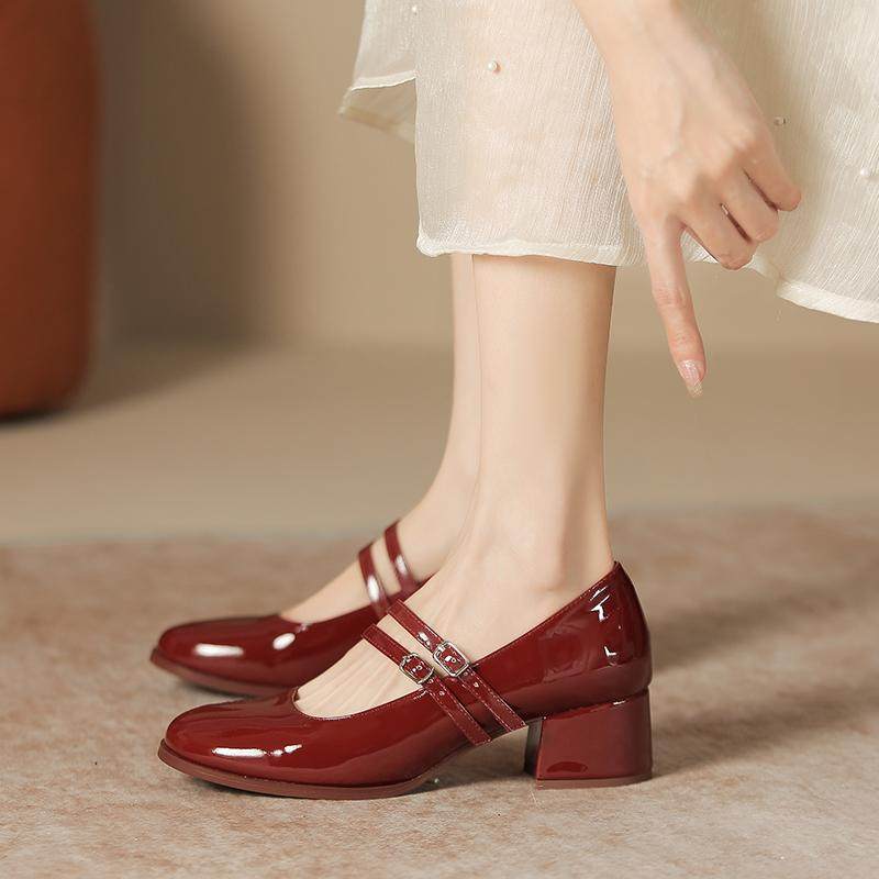 大东红色单鞋女2025新款秋季配裙子女鞋粗跟玛丽珍女鞋婚鞋高跟鞋