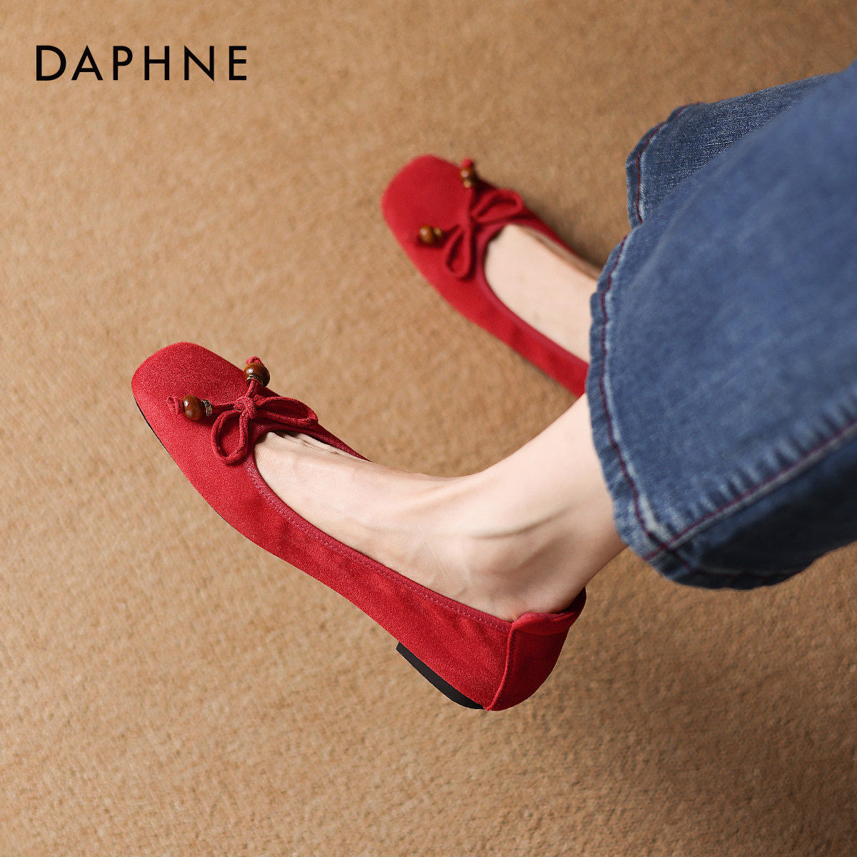 达芙妮红色单鞋女2025新款秋季玛丽珍女鞋婚鞋平底瓢鞋秋款小皮鞋