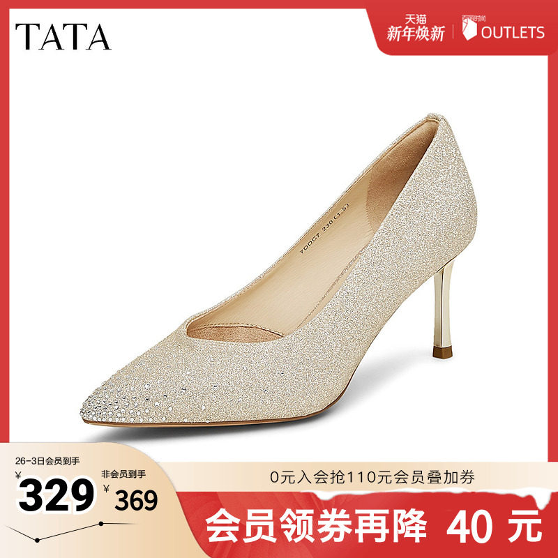 TATA他她闪钻优雅气质高跟鞋女鞋婚鞋秀禾鞋单鞋2025春新7DDC7AQ5